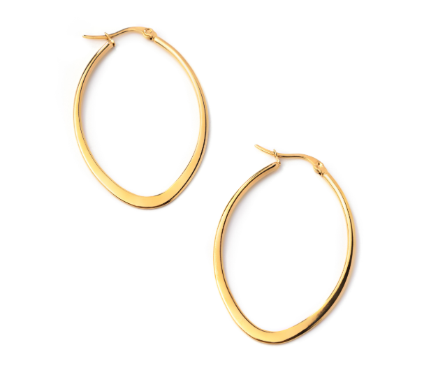 Like a golden silhouette in motion, the earrings “Ovate” frame the face with softened, sculptural curves—an elegant ode to symmetry and shape.